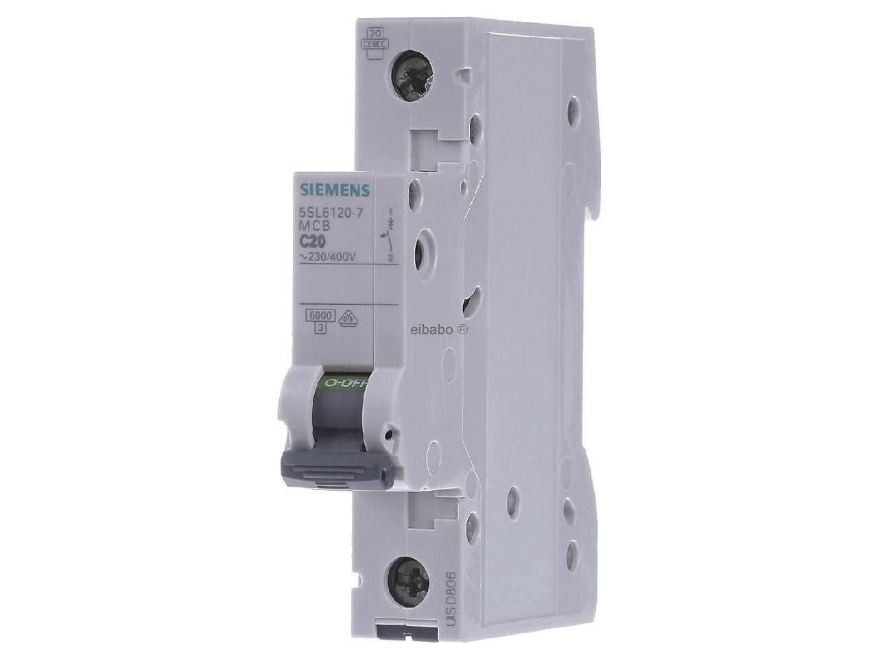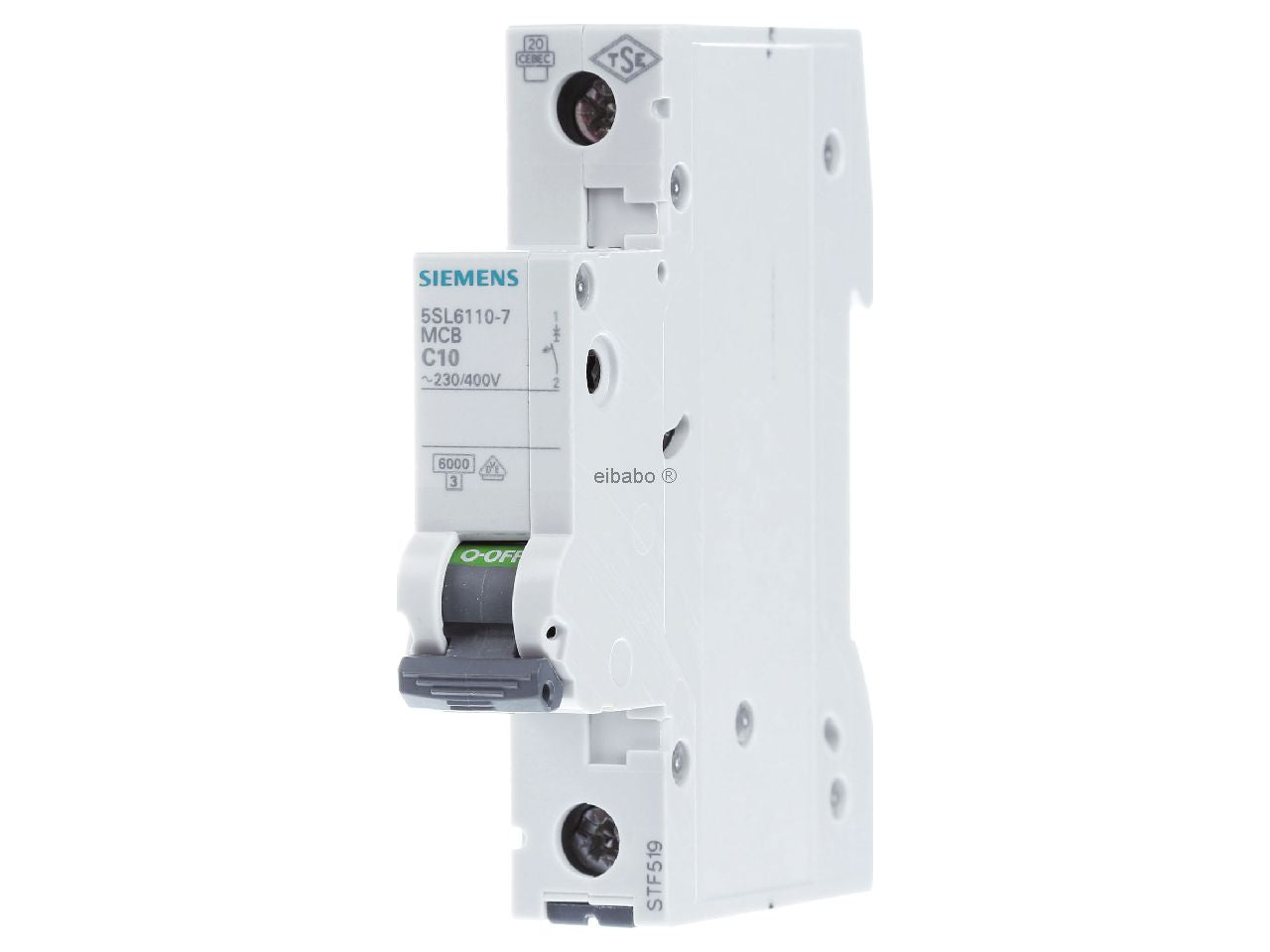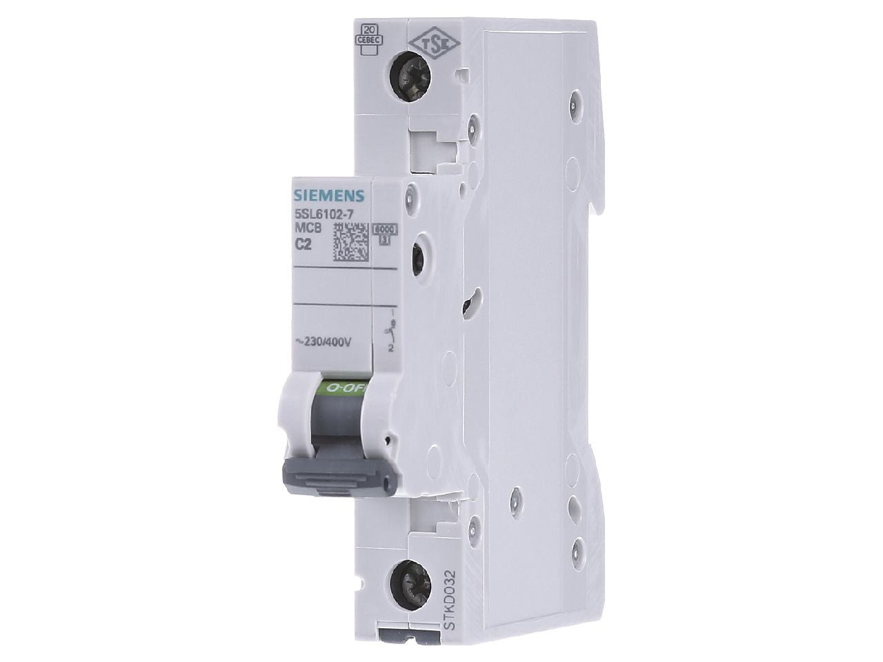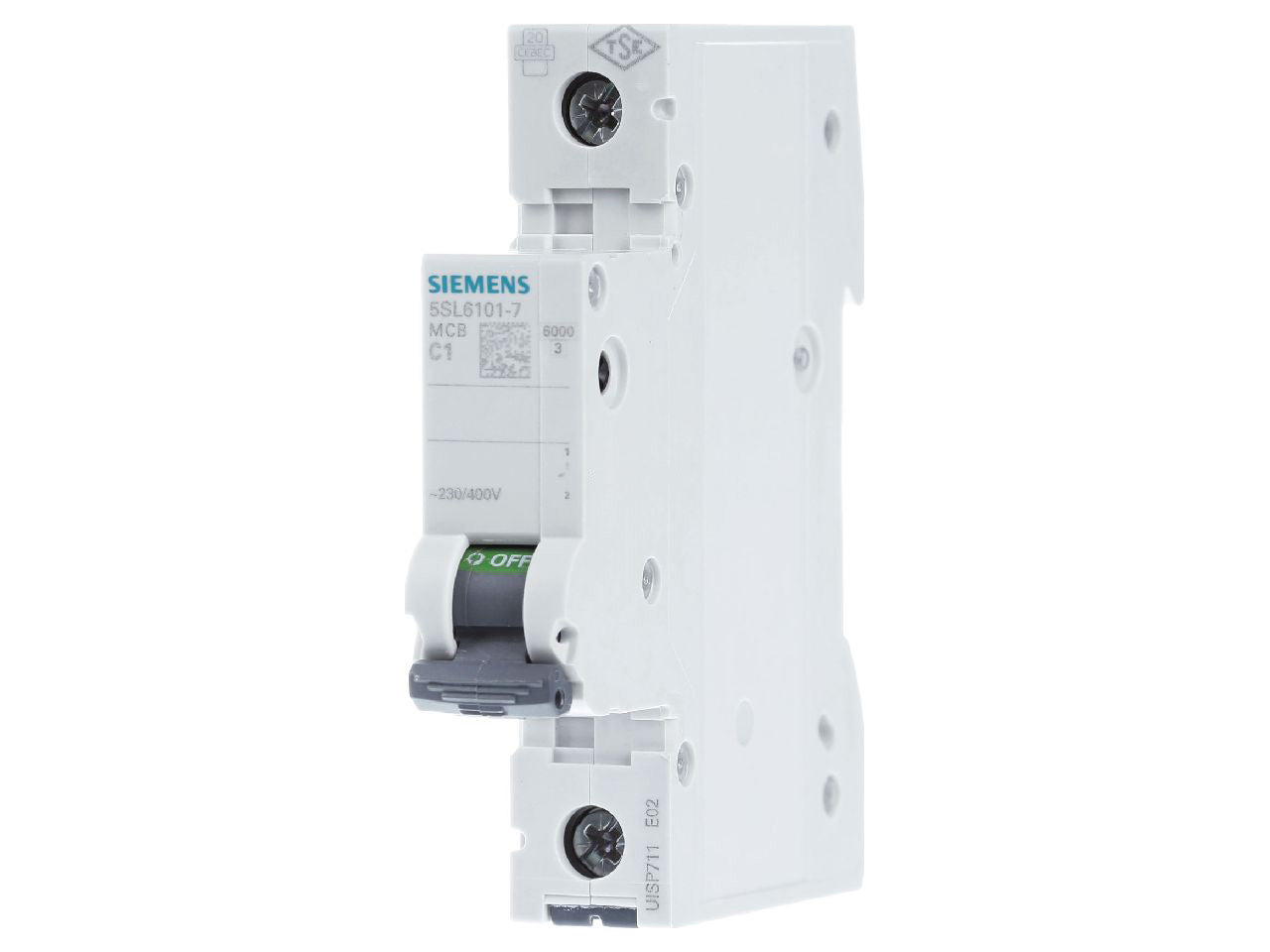 Miniature circuit breaker Siemens – breaker 1-p C1A Built-in depth 70mm, Release characteristic C, Rated current 1A, Rated voltage 400V, Rated short-circuit breaking capacity Icn according to EN 60898 at 400V 6kA, Frequency 50Hz.