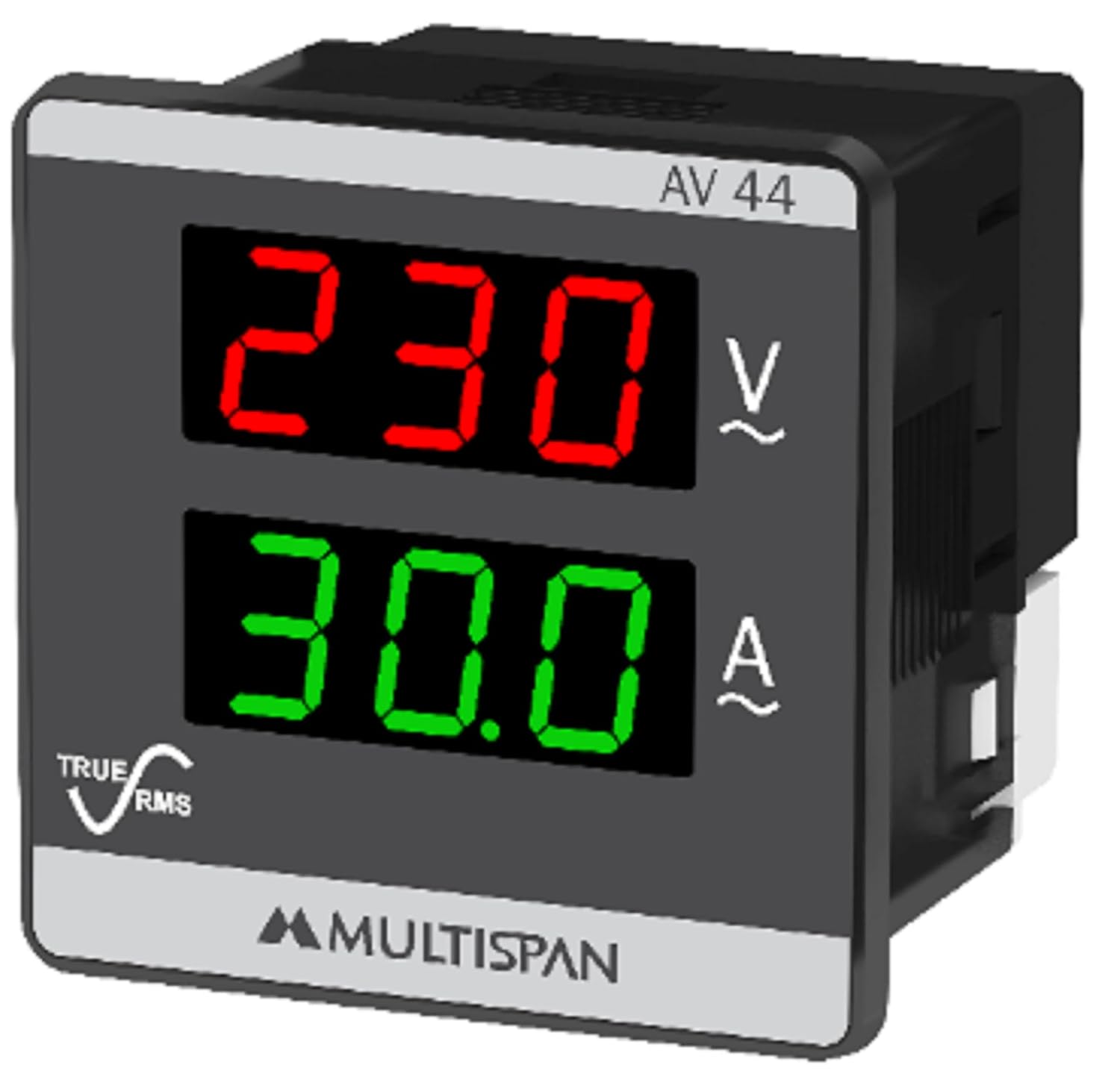 AV-44 DIGITAL AMPERE & VOLT METER FOR AC CURRENT SELECTABLE CT SIZE 48X46mm