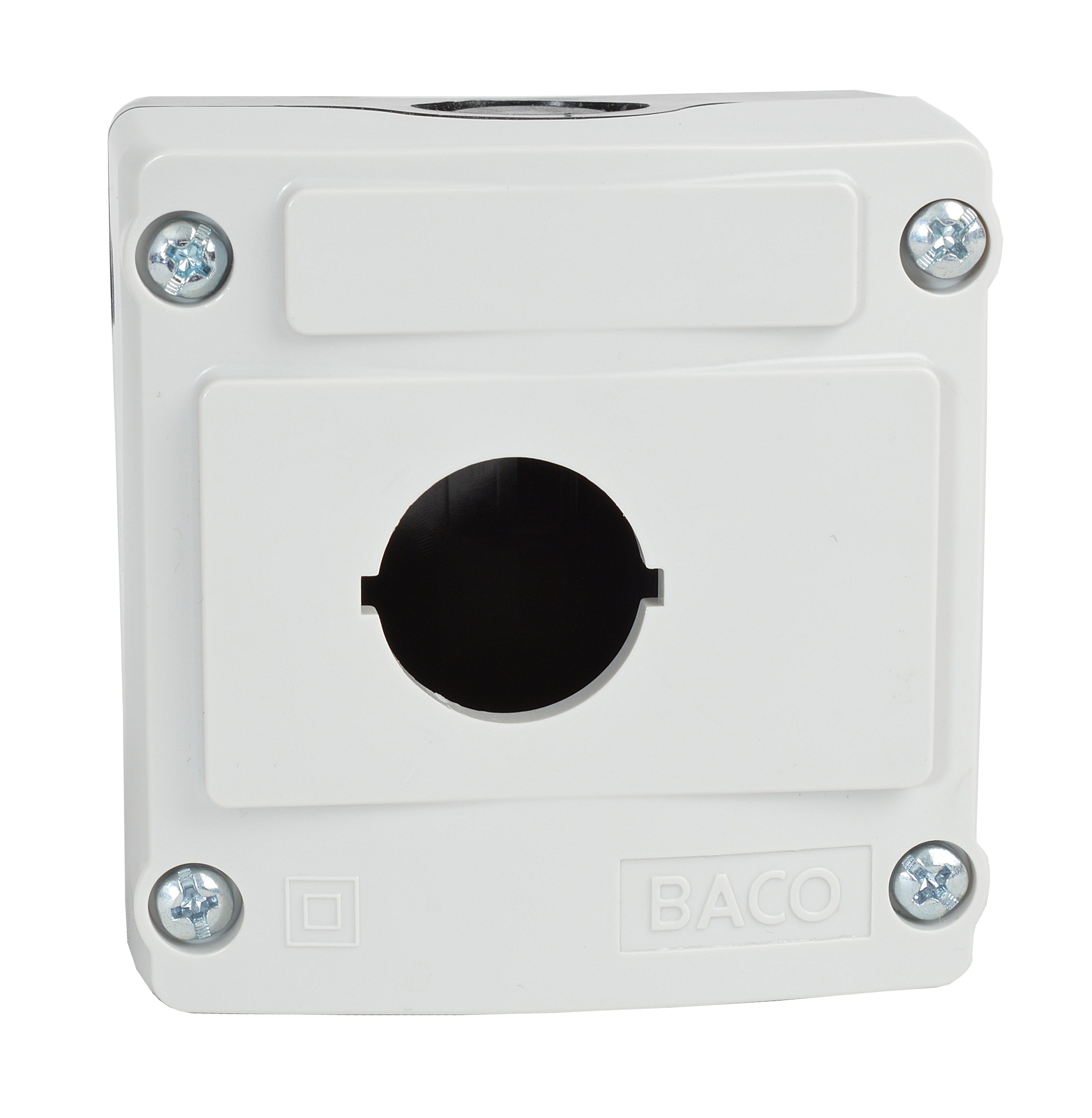 ENCLOUSER PLASTIC BACO LBX0100. 22mm HOLE DIAMETER NUMBER OF HOLES = 1