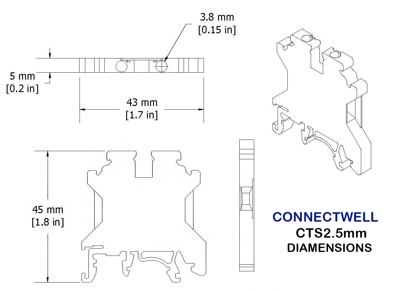 2.5 sq.mm Feed Through Terminal Blocks are the most Versatile terminals for control, automation, instrumentation and power distribution applications. A specially designed flexible foot enables easy mounting and dismounting from the Din Rail with the help of a screw driver.