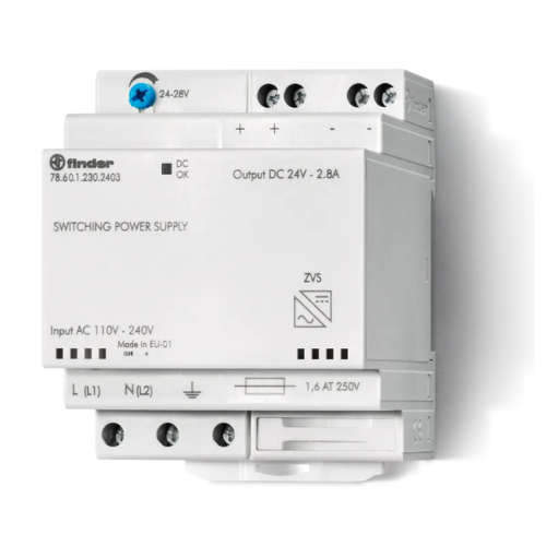 Small size: 70 mm (4 modules) wide, 61 mm deep