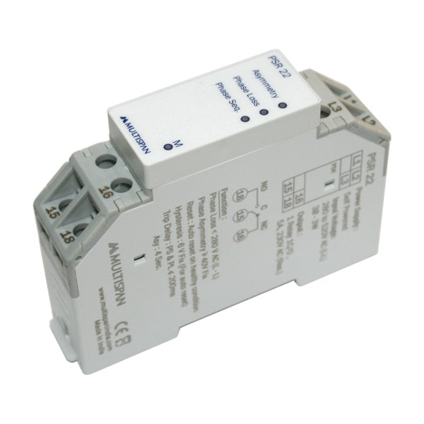 PSR-22 THREE PHASE MONITORING RELAY 280 TO 520Vac PHASE ASYMMETRY-PHASE SEQUENCE - PHASE LOSS