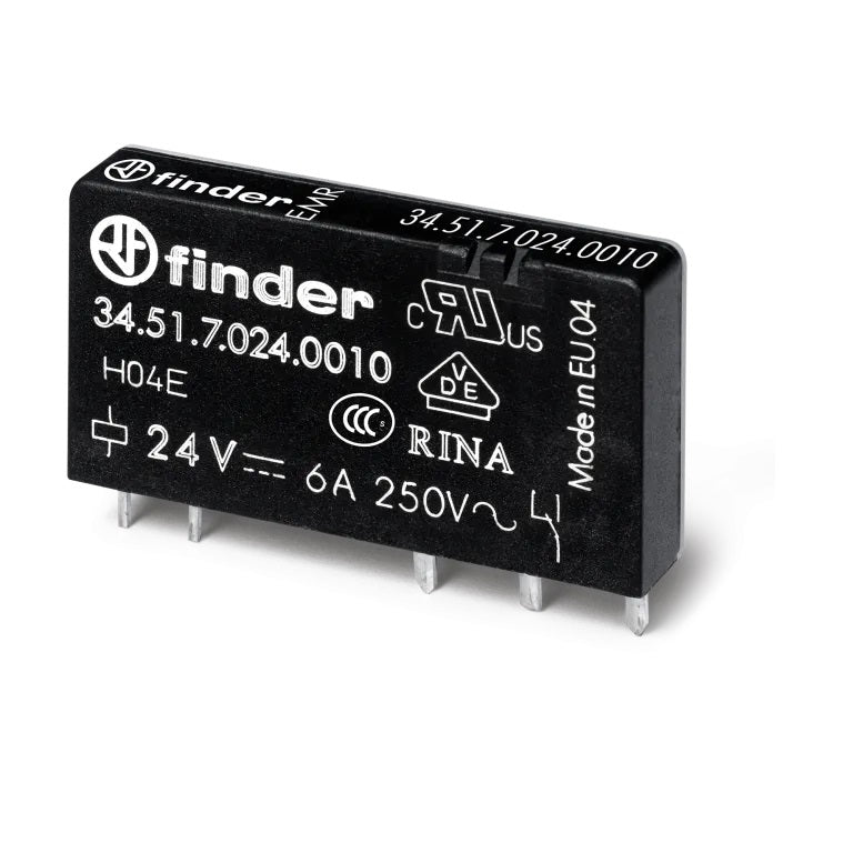 Type 34.51 ultra-slim electromechanical PCB relays, 6 A, 5 mm width, low absorption coil and suitable for PCB mounting or socket mounting using the 93 Series sockets.