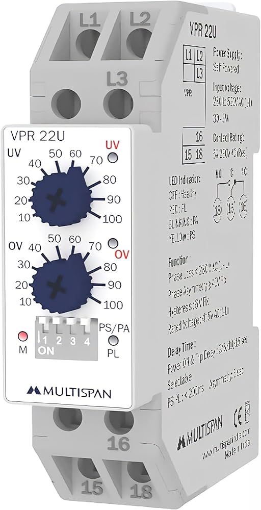 VPR-22U 280-520Vac 3 PHASE VOLTAGE PROTECTION RELAY OVER & UNDER VOLT SELECTION KNOB