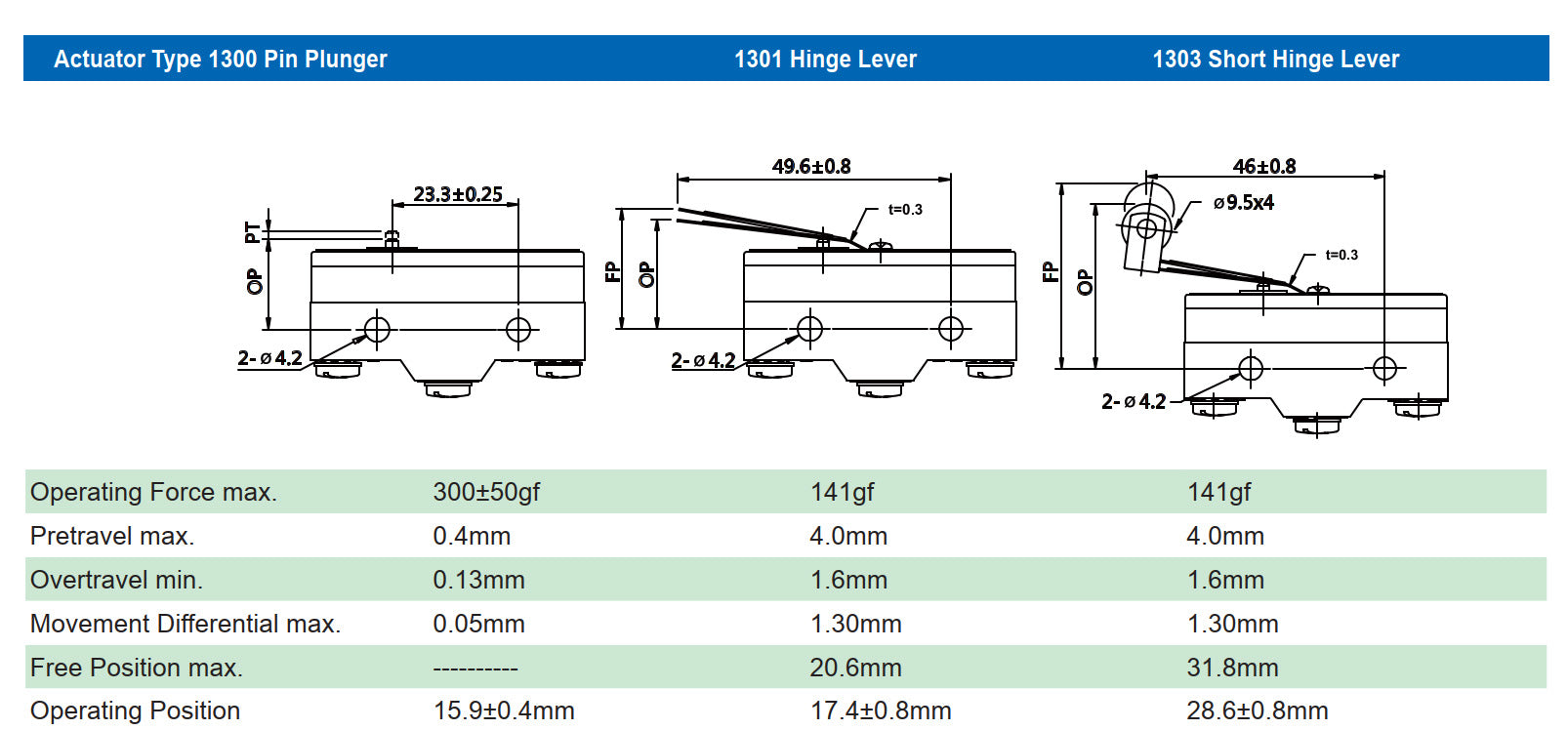 Z-SERIES LIMIT SWITCH 1300-Pin Plunger 1301-Hinge Lever 1303-Short Hinge Lever